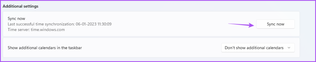 Etapa 5: em Configurações adicionais, clique no botão Sincronizar agora.