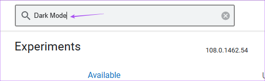 Etapa 3: na janela Experiments, digite Dark Mode na barra de pesquisa na parte superior.