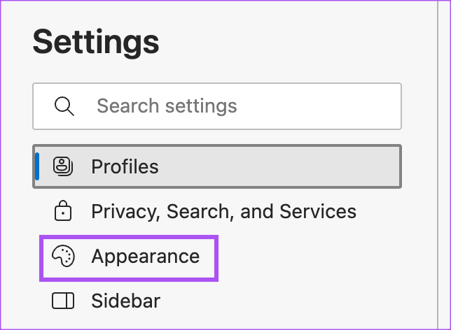 Etapa 4: Clique em Aparência no menu à esquerda.