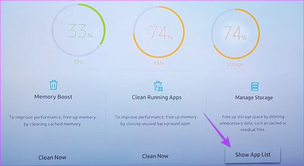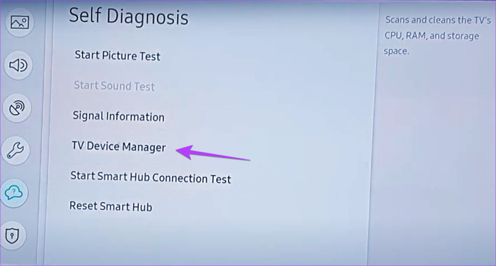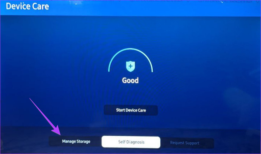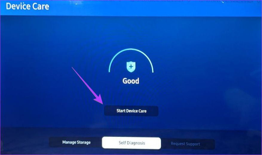Você também pode limpar o cache de todos os aplicativos simultaneamente usando a funcionalidade Device Care da sua TV Samsung. Siga estas etapas para o mesmo: