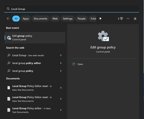 1. Primeiro, clique na pesquisa do Windows 11 e digite Editor de política de grupo local. Em seguida, abra o editor Local Group Policy na lista de resultados correspondentes.
