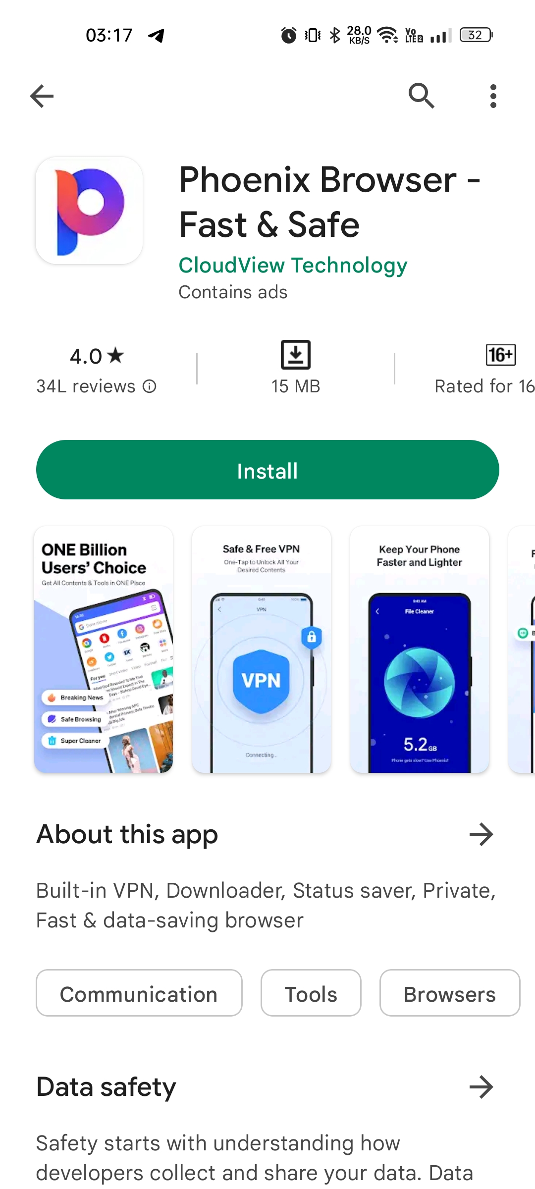 3. Em seguida, na Google Play Store, procure por Phoenix Browser.