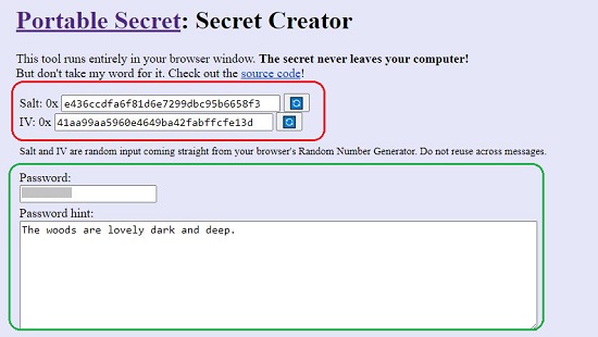 Portable Secret é uma ferramenta muito simples e fácil de usar que ajuda você a compartilhar e armazenar dados criptografados. Tudo o que você precisa para descriptografar é um navegador moderno e a senha. Funciona muito bem, mas pode não ser adequado para uma grande quantidade de imagens e arquivos.