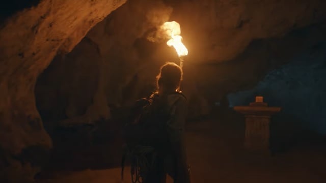 Na marca de 0:43 do vídeo abaixo, uma garota pode ser vista caminhando em direção a algum tipo de artefato em uma caverna com uma tocha na mão. Ela certamente não se parece com Lara Croft, como este usuário ResetEra apontou. A personagem, que parece jovem o suficiente para ser a filha de Nathan Drake e Elena Fisher, Cassie, tira o pó do artefato aos 0:47 em um flash na tela que dura apenas um segundo.