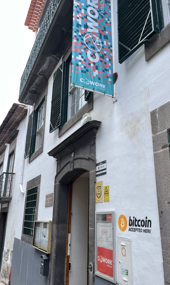 A entrada do espaço de coworking da Loja, Cowork Funchal. Você acha que aceita bitcoin? Fonte: autor.