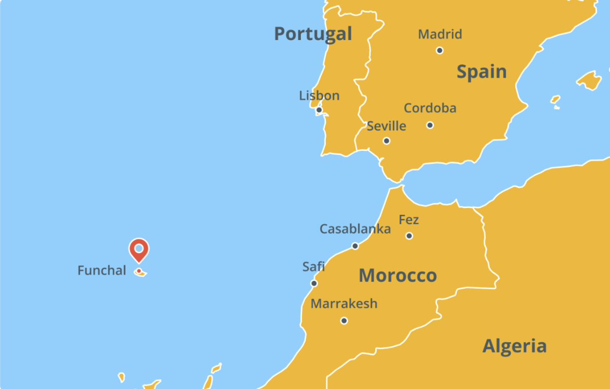 A ensolarada ilha da Madeira ergue-se do Oceano Atlântico cerca de 600 milhas ao largo da costa de Portugal. Um destino turístico popular graças às paisagens prontas para o Instagram, um clima quente e temperado e uma rica herança cultural, é um pedaço de terra tranquilo. Há um voo regular direto para Nova York enquanto companhias aéreas de baixo custo transportam passageiros para algumas capitais europeias.