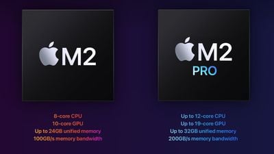 Os chips M2 Pro e M2 Max no MacBook Pro também fornecem largura de banda de memória de 200 GB/s e 400 GB/s, respectivamente-um enorme aumento em relação à largura de banda de memória de 100 GB/s com o chip M2 no MacBook Air.