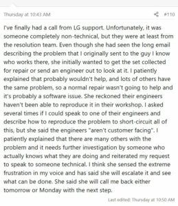 Embora nada oficial, um dos afetados supostamente contatou o suporte ao cliente da LG sobre a preocupação, que encaminhou o problema para uma investigação mais aprofundada.