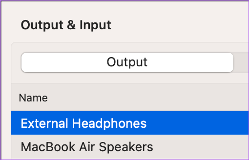 Os fones de ouvido externos devem ser selecionado como sua fonte de saída.