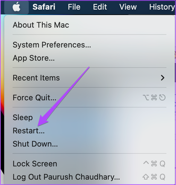 Outra solução básica é reiniciar o seu Mac. Esse método de solução de problemas pode realmente ajudar a resolver muitos problemas de hardware e software no seu Mac. Isso redefinirá todo o sistema operacional.