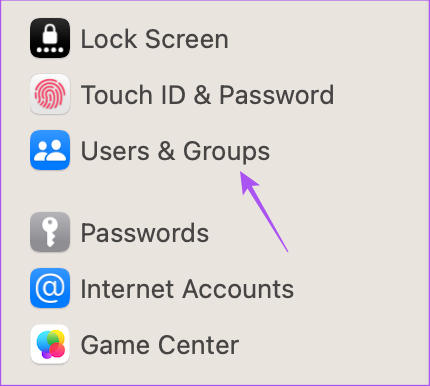 Etapa 2: Clique em Usuários e Grupos no menu à esquerda.