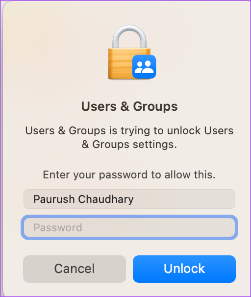Etapa 4: Digite sua senha do Mac para prosseguir.