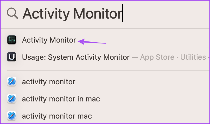 Etapa 1: Pressione Command + barra de espaço para abrir a pesquisa do Spotlight, digite Monitor de atividade, e pressione Return.