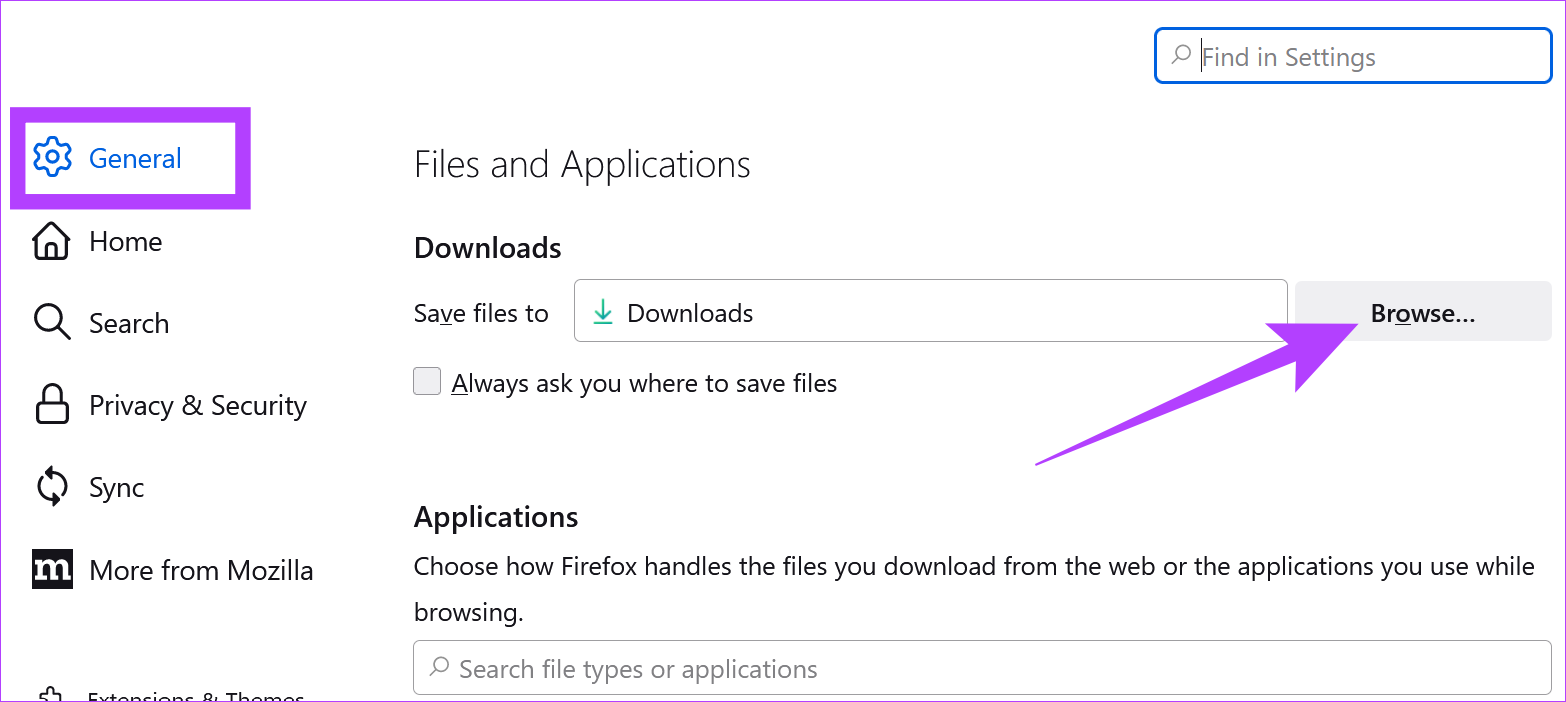 Os downloads do Firefox podem falhar se houver um problema com a pasta em que estão sendo salvos. Portanto, é melhor alterar a localização dos seus downloads nas configurações do Firefox antes de tentar baixar o arquivo novamente. Veja como fazer isso.