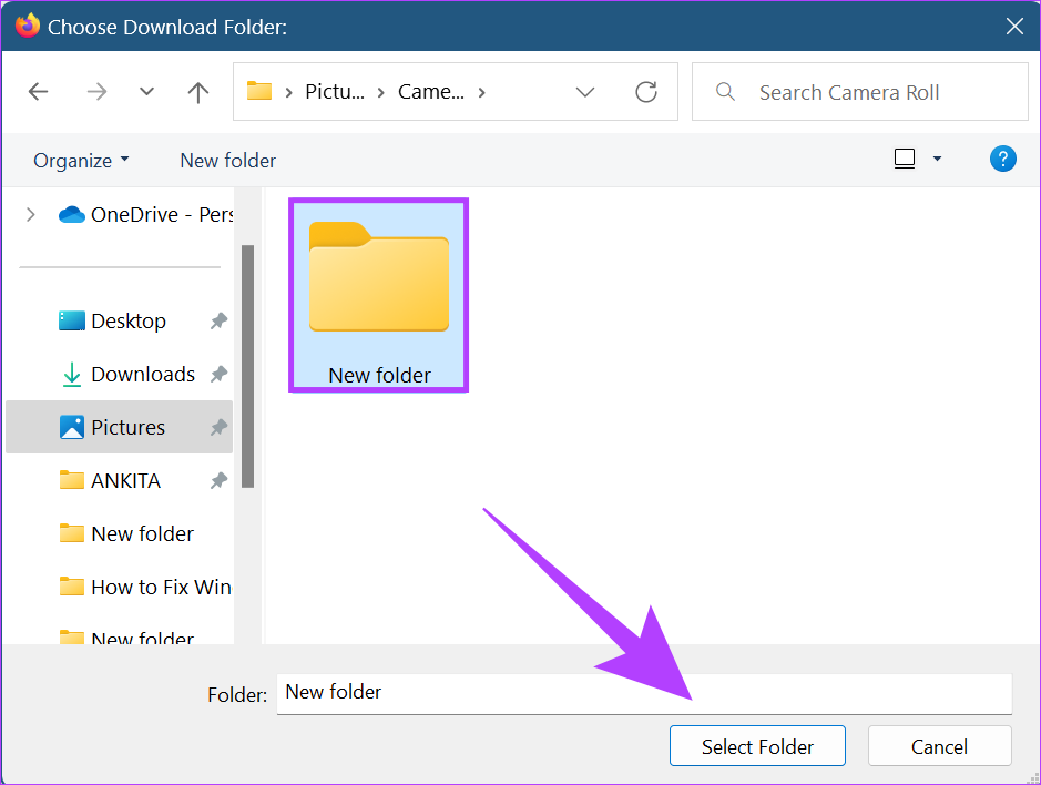Etapa 5: Em seguida, selecione a nova pasta e clique em Selecionar pasta.