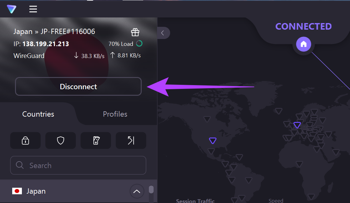 Os serviços VPN também podem causar problemas com downloads, pois podem limitar as velocidades de dados e até mesmo restringir determinados sites devido a alterações em sua geolocalização. Isso também pode resultar em downloads no Firefox falhando abruptamente. Para corrigir isso, basta acessar seu aplicativo VPN e clicar no botão Desconectar.