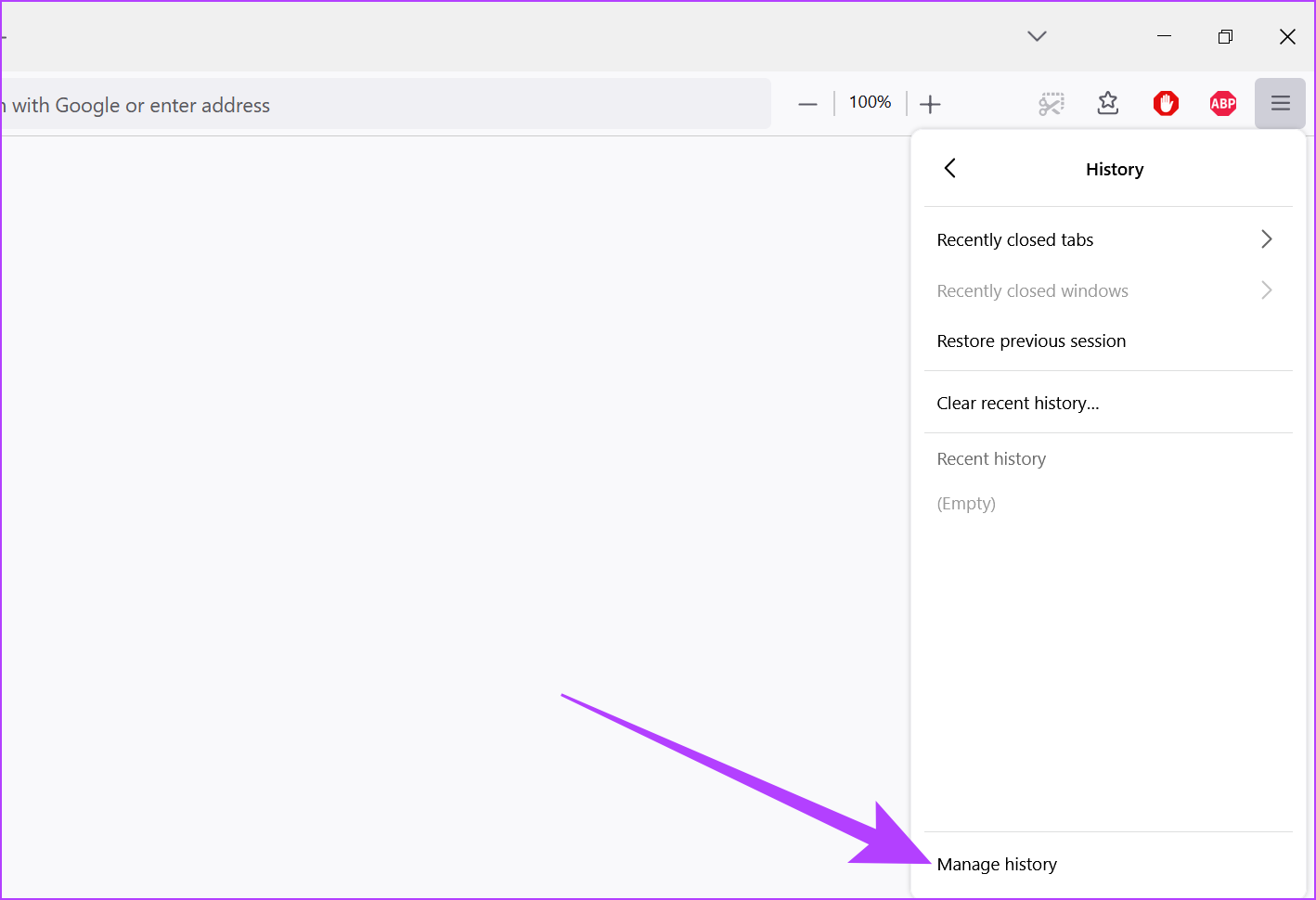 Etapa 3: Aqui, clique em Gerenciar histórico.
