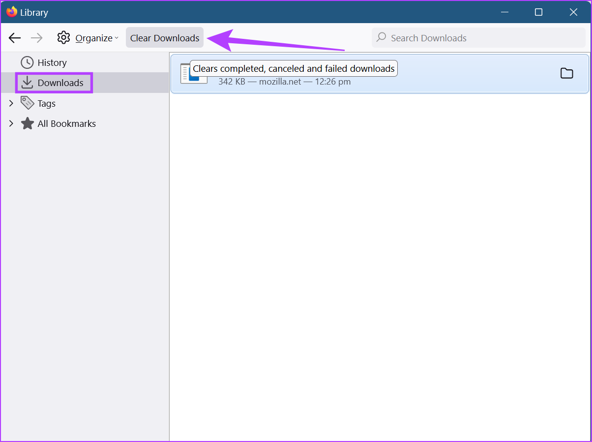 Seu histórico de downloads do Firefox agora será limpo.