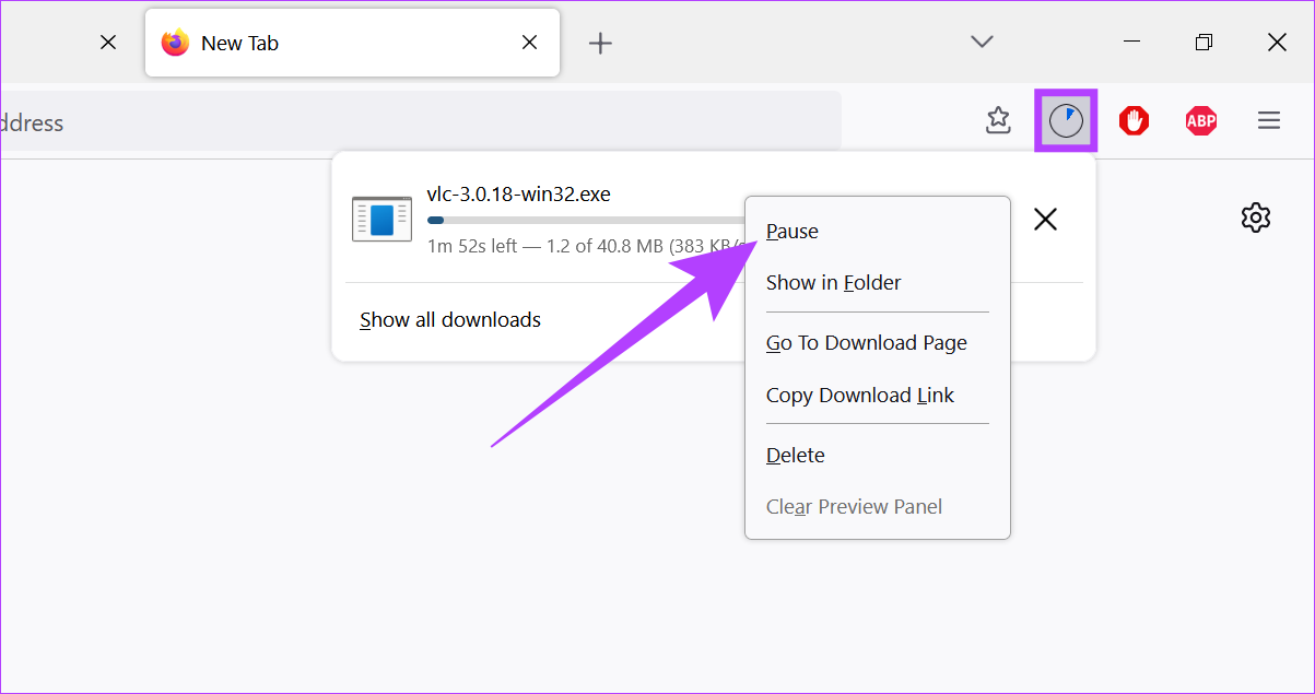 Etapa 2: Clique com o botão direito do mouse no download e selecione Pausar.
