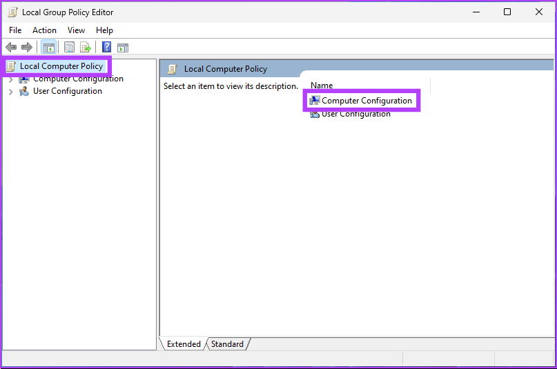 Etapa 2 : No painel esquerdo, em’Política de computador local’, selecione Configuração do computador.
