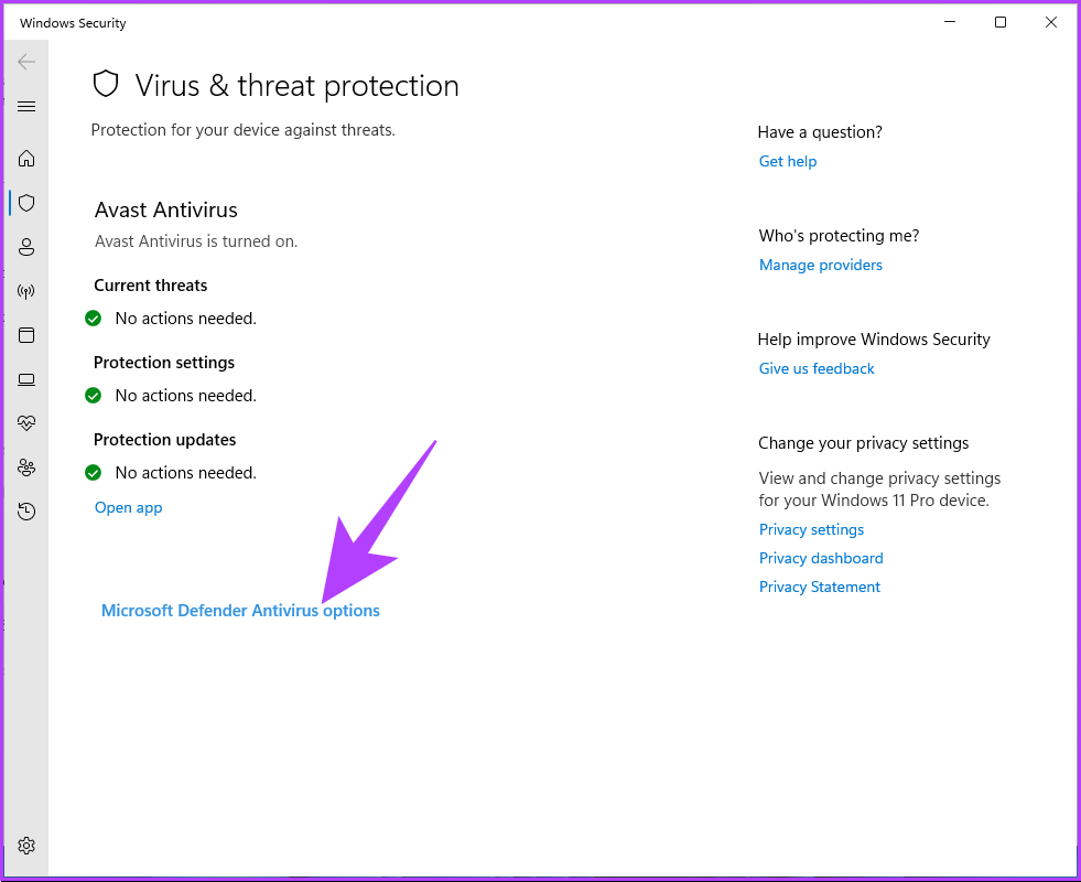 Etapa 5: CLI Clique e expanda’Opções de antivírus do Microsoft Defender.’