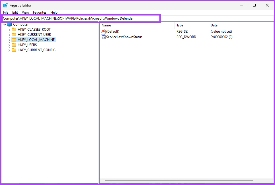HKEY_LOCAL_MACHINE\SOFTWARE\Policies\Microsoft\Windos Defender
