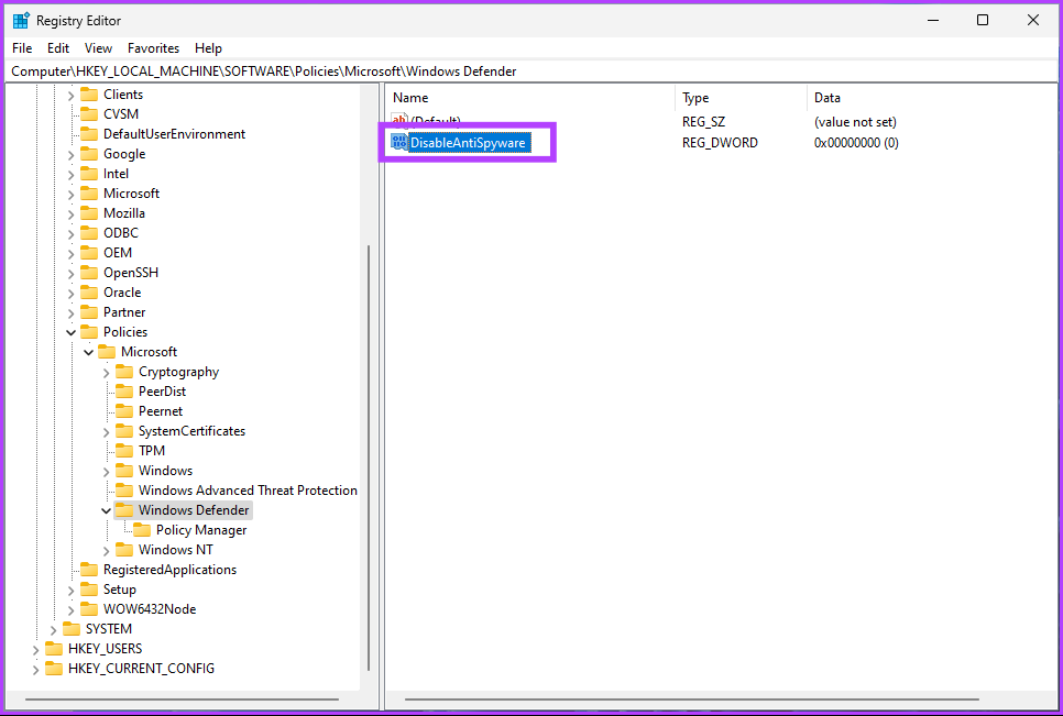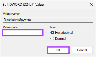 Etapa 10: Digite DisableAntiSpyware no campo de nome.