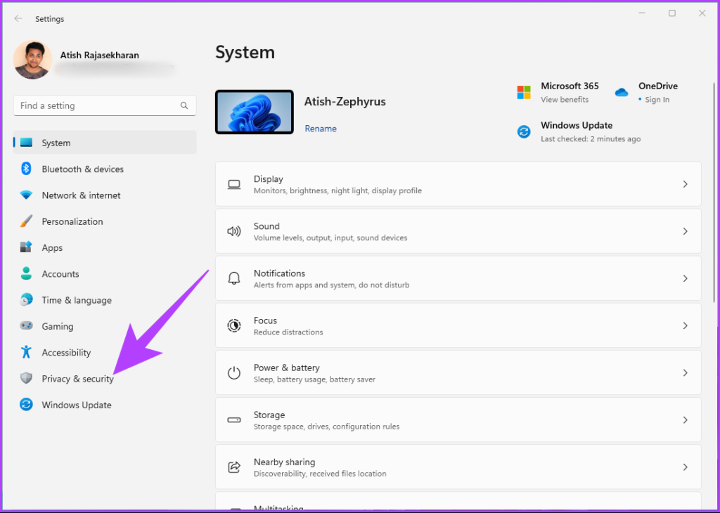 Etapa 2: Vá para Configurações de privacidade e segurança.
