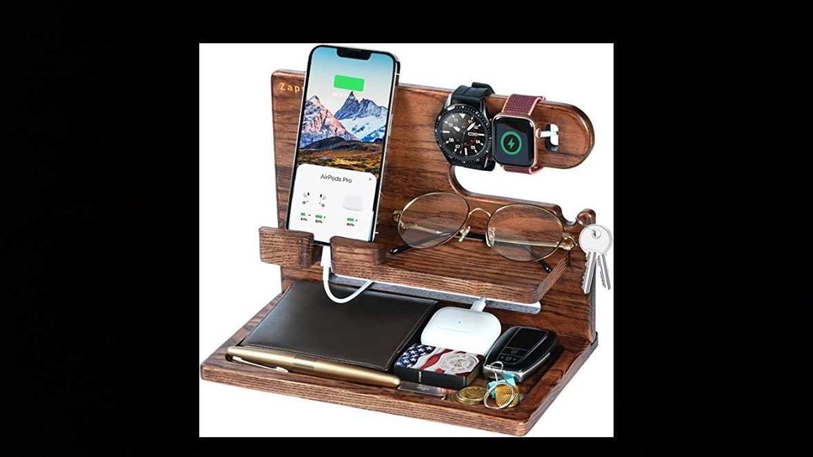 Zapuvo Ash Wood Phone Docking Station Nightstand Organizer p>