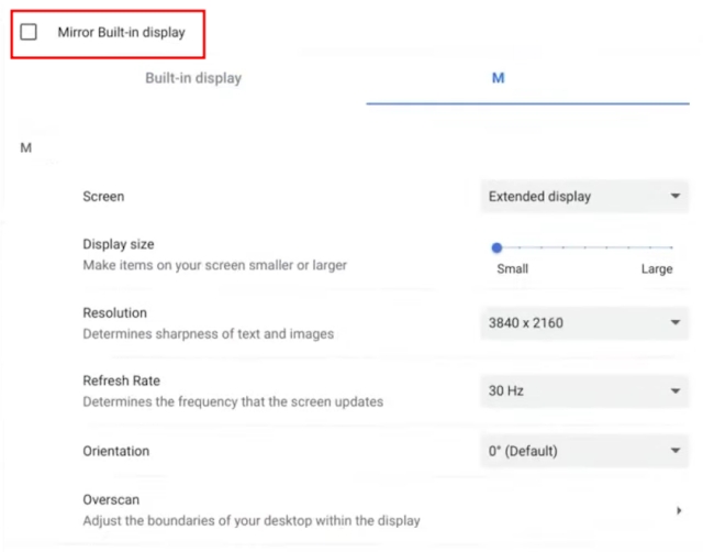 4. Aqui, sua TV aparecerá como um monitor externo para seu Chromebook. Clique nele e selecione seu posicionamento.