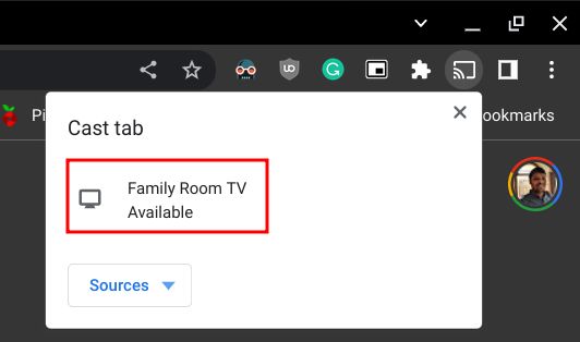 2. Em seguida, seu Chromebook detectará automaticamente sua Android TV. Clique no nome da TV para conectar seu Chromebook à TV.