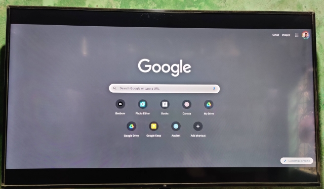 3. E aí está! A tela inteira do seu Chromebook será espelhada na sua TV imediatamente.