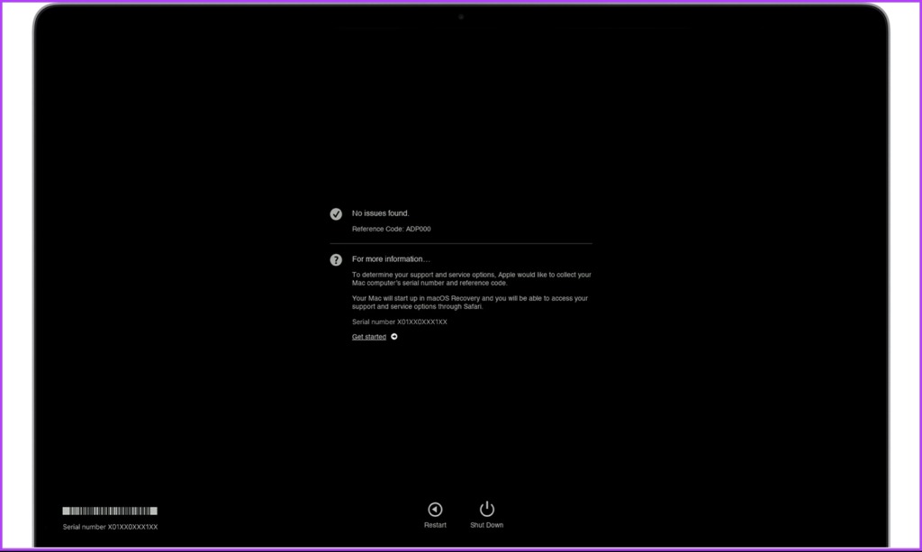 É isso. O diagnóstico começará. Quando terminar, você verá os resultados com um ou mais códigos de referência do Apple Diagnostics para ajudar você identifica possíveis problemas.