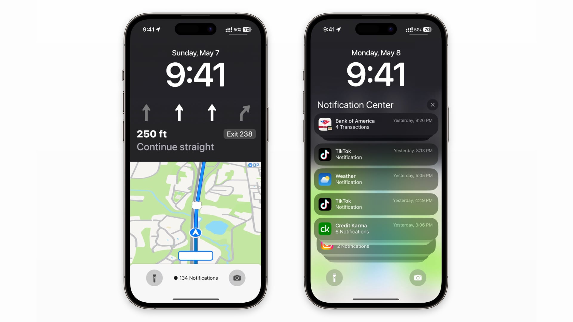 Você poderá navegar com o widget de atividade ao vivo do Maps e ainda ver as notificações e a data/hora na tela de bloqueio do seu iPhone.