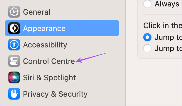 Etapa 2: Role para baixo e clique em Centro de Controle no menu à esquerda.