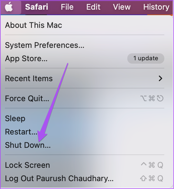 Etapa 1: Clique no logotipo da Apple no canto superior esquerdo da barra de menu e selecione Desligar no menu exibido.