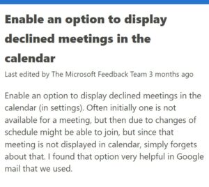 No entanto, usuários acham que o aplicativo carece de um recurso muito importante, ou seja, o opção para manter as reuniões recusadas no calendário.