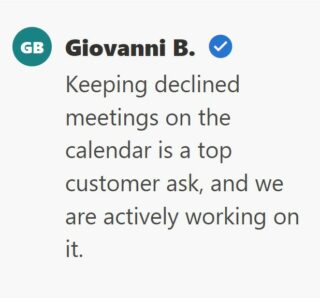 Isso dificulta o acompanhamento de reuniões recusadas, evita agendamento duplo ou verificar a disponibilidade de uma pessoa.