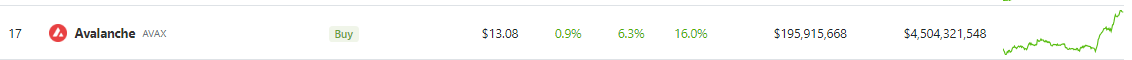 Preço AVAX brilhando em verde hoje. Fonte: Coingecko