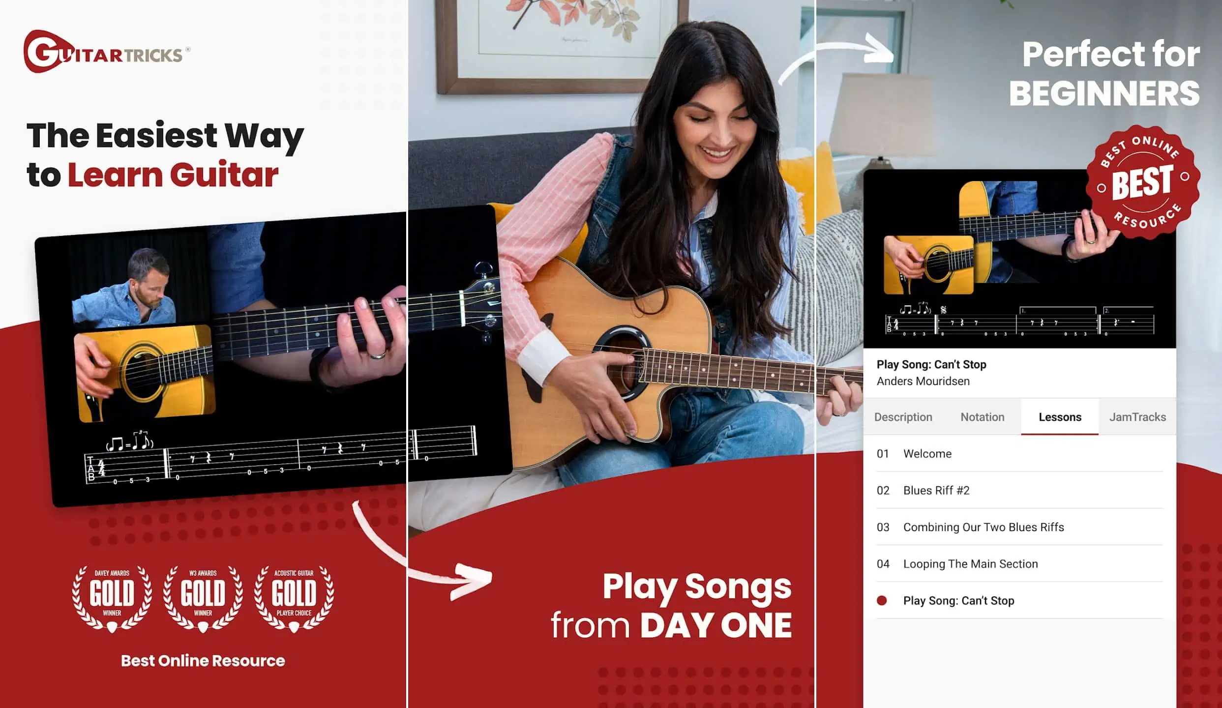 Mais de um milhão de pessoas usam as aulas de violão de Justin para aprender acordes de guitarra, tablaturas, dedilhar, capo, dedilhar e tocar de verdade canções de guitarra. Este aplicativo tem mais de 100 aulas de vídeo de instrução de guitarra sequenciais. Há também um sistema de autoavaliação para acompanhar seu progresso no aprendizado do violão ao longo do tempo.