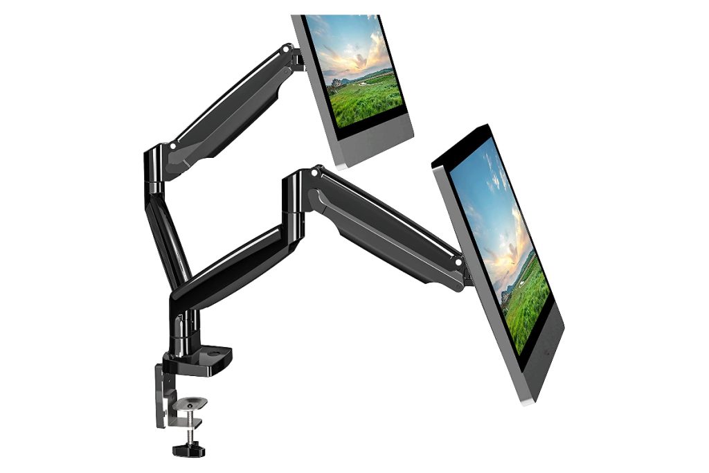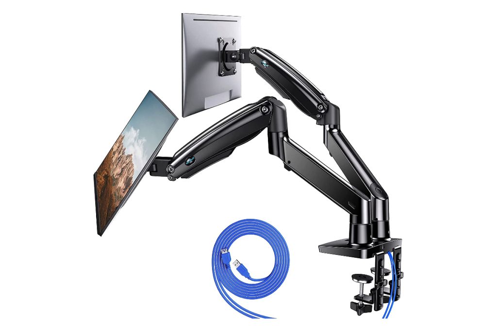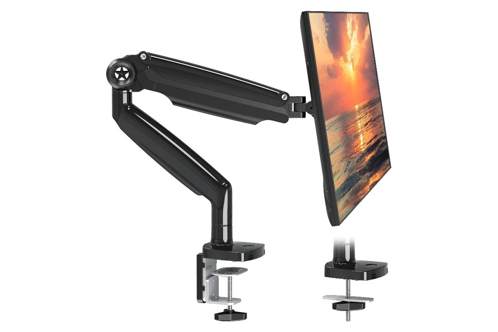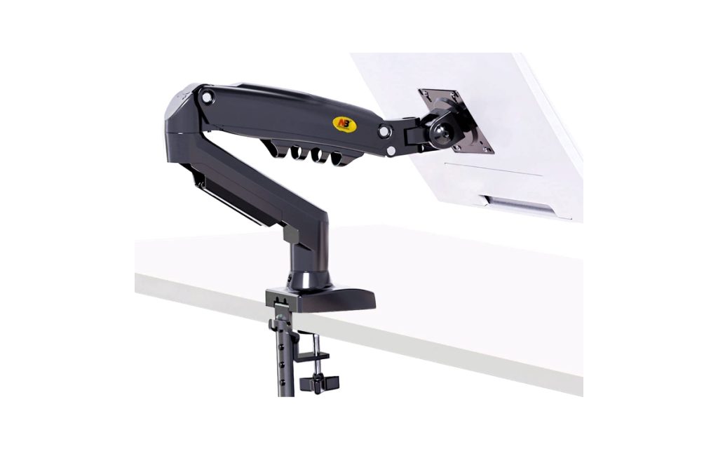 O braço do monitor NB North Bayou pode acomodar monitores consideráveis de até 30 polegadas e pesando até 19,8 libras. Suporta inclinação de-30° a +85°, rotação de 360° e rotação de 360°. Como tal, você não terá dificuldade em encontrar um ângulo e posição preferidos em sua mesa de apoio.
