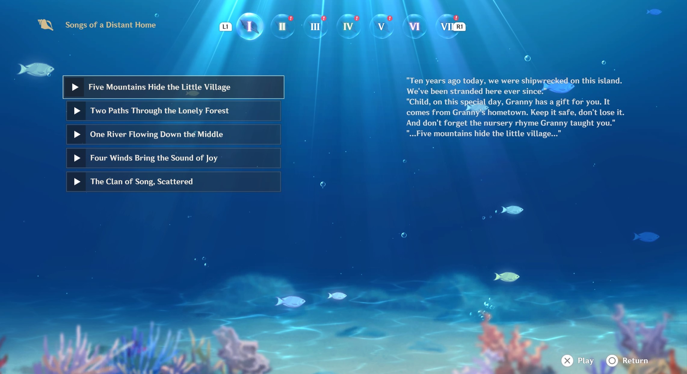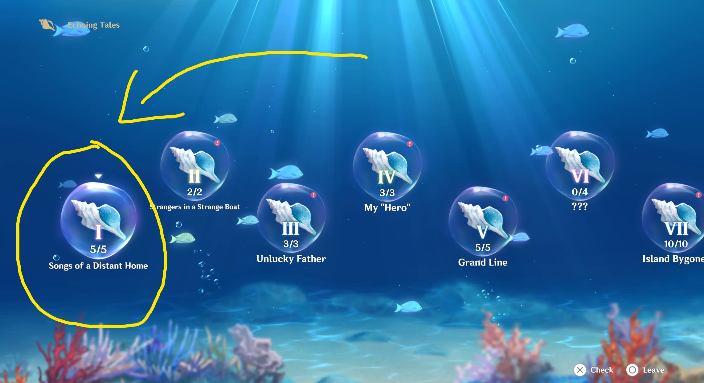 Se você abrir o menu do evento para Echoing Tales e vá para Conch Retrospection, você verá o primeiro ramo de colecionáveis ​​chamado“ Songs of a Distant Home ”.