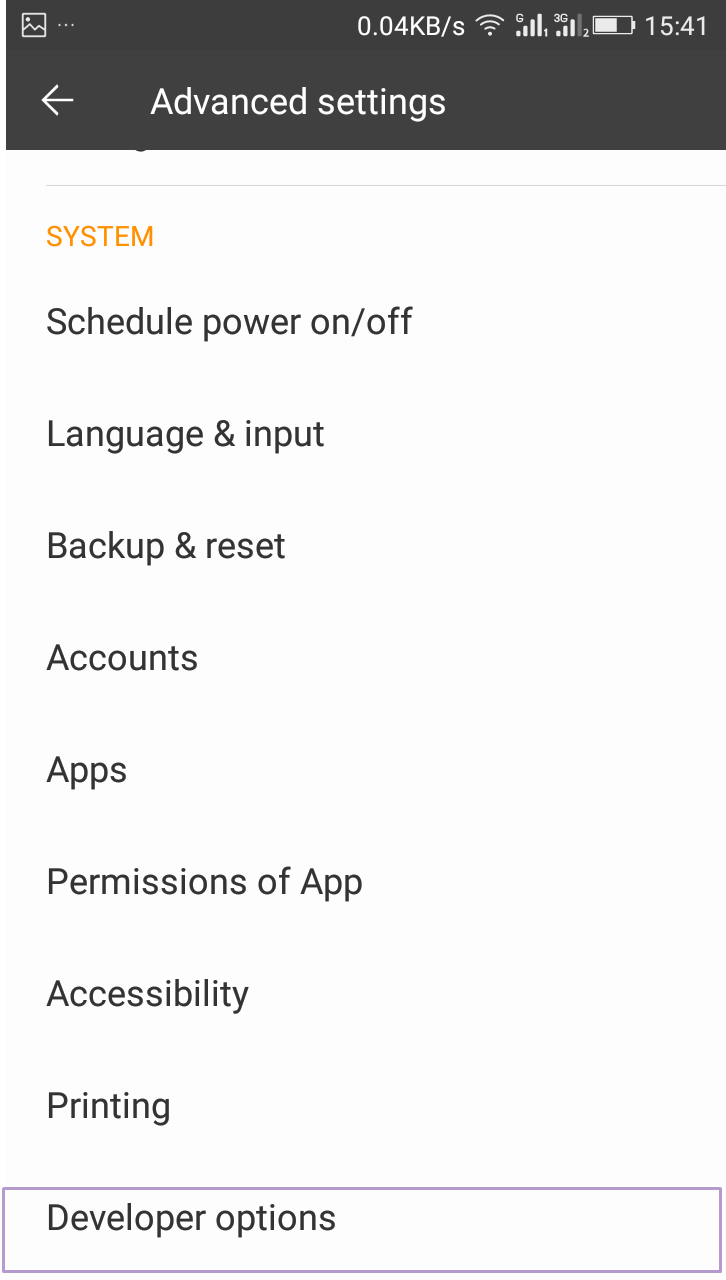 Etapa 2. Agora volte para as configurações e você encontrará a Opção do desenvolvedor . Toque em Opção do desenvolvedor e role para baixo.