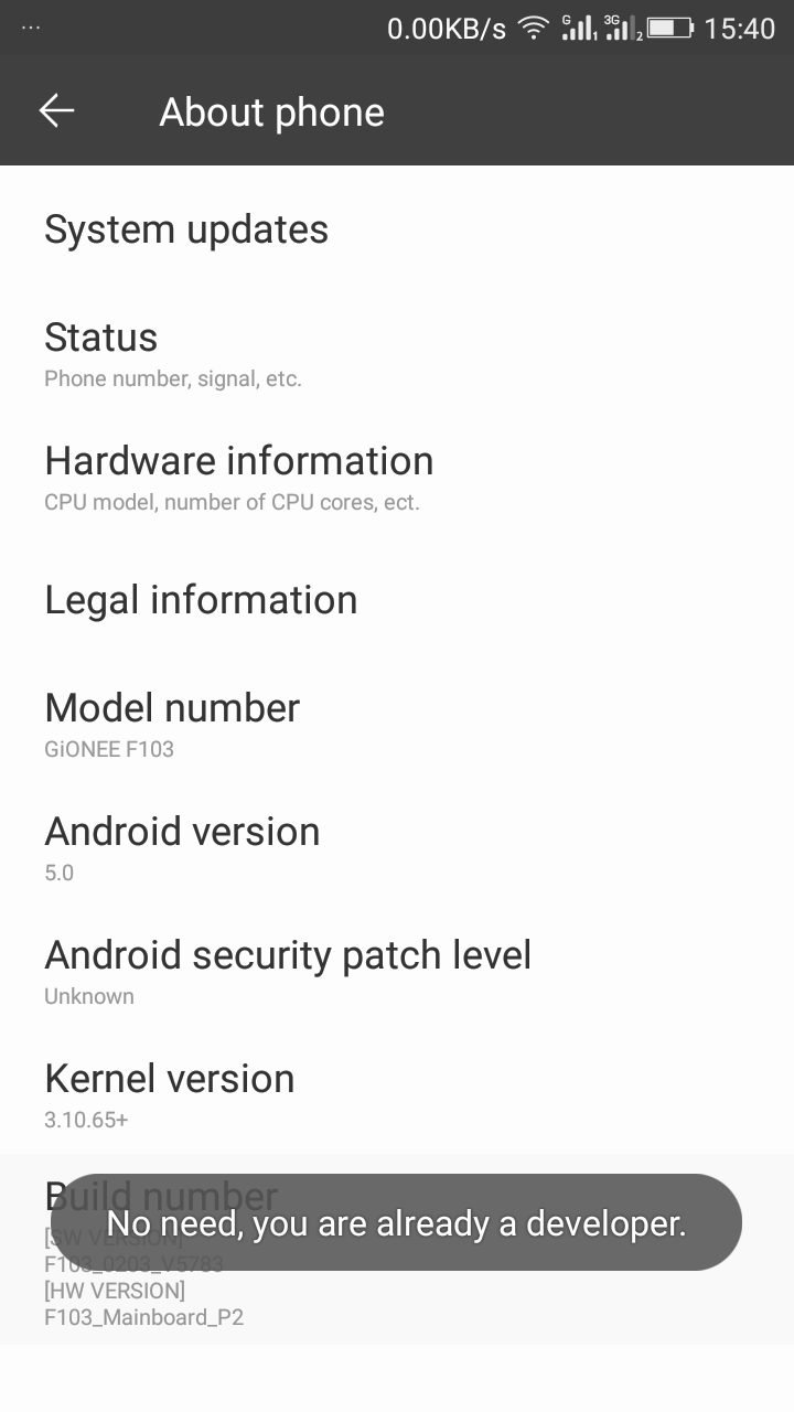 Etapa 1. Abra Configurações em seu dispositivo Android, role para baixo e clique em Sobre o telefone . Agora você verá as opções construir número lá. Toque de 7 a 10 vezes no número da compilação e você verá que as opções do desenvolvedor serão ativadas.