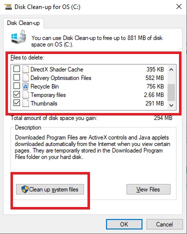 Etapa 3: selecione Limpar arquivos do sistema .
