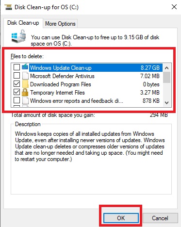 Etapa 5: Selecione os arquivos que deseja remover e pressione OK .