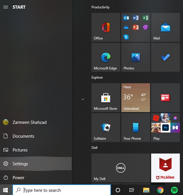 Etapa-1: Vá para o menu Iniciar e selecione a engrenagem Configurações . (Teclas de atalho: Win + I )