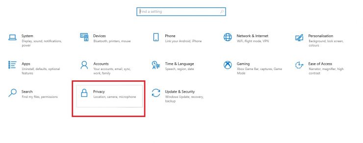 Etapa 2: Selecione Privacidade .