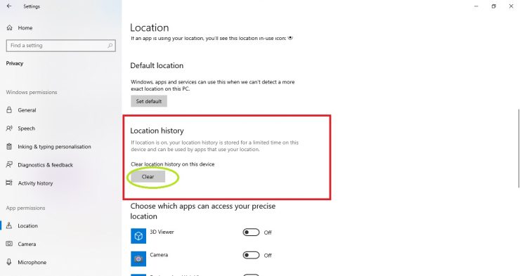 Etapa 4: Role para baixo e sob o título Histórico de localização, selecione Limpar .