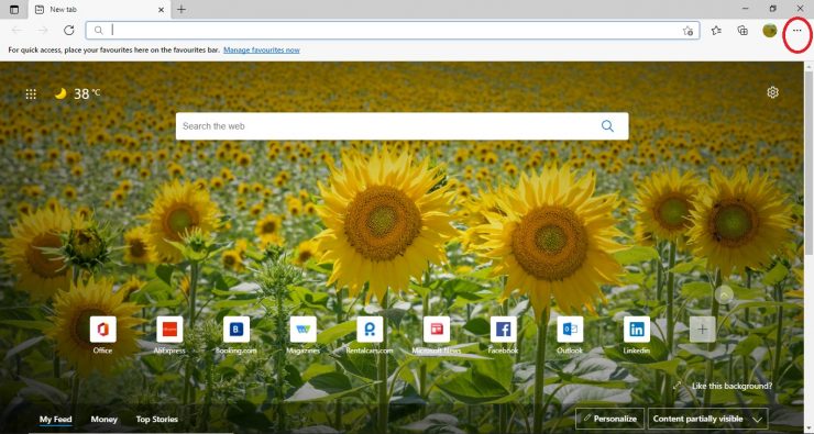 Abra o Microsoft Edge. Clique nos três pontos horizontais no canto superior direito do janela.
